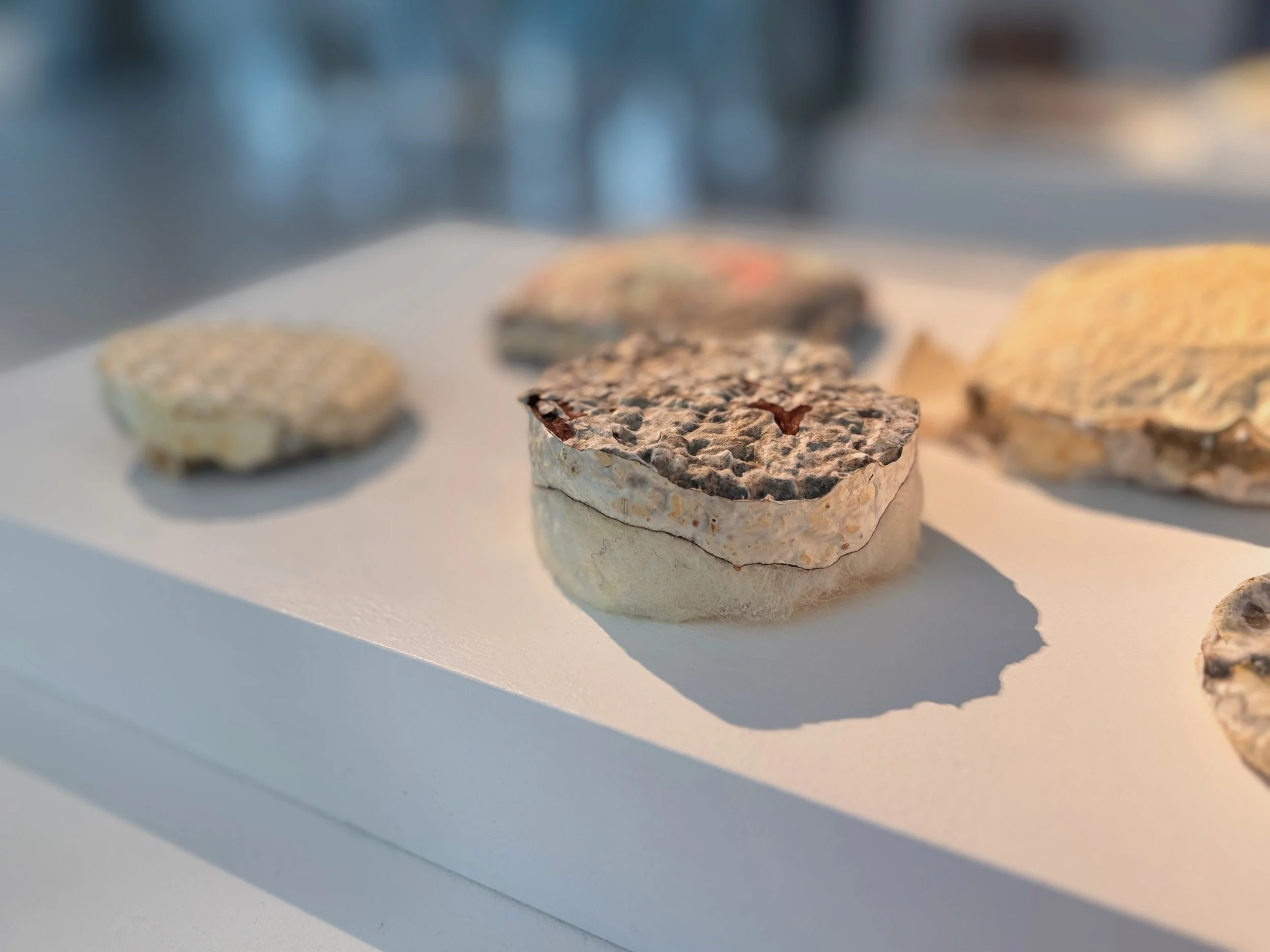 The material potential and mycelium and various textiles composites was pushed to determine scope for biodegradability, creation of new surfaces, shapes and forms, and the possibilities to identify regenerative source of ‘food‘ for the mycelium to thrive and grow.
